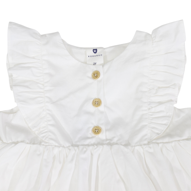 Bring a touch of playful charm to her day with the Korango Girls Frill Blouse! Made from soft, 100% cotton and fully lined, it’s perfect for all her twirls and tumbles. Frill sleeves add a stylish touch, while wooden-textured buttons make dressing quick and easy. The crisp white colour makes it versatile for everything from playdates to parties. Simple, stylish, and sure to become a wardrobe favourite!