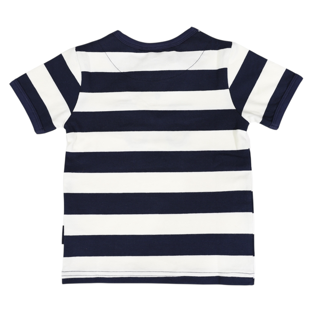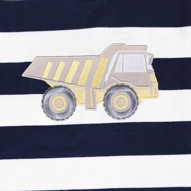 Get ready for fun with the Korango Boys Truck Applique Tee! Made from soft navy and white striped cotton, it’s comfy for all-day play. Featuring a bold yellow dump truck design, it’s perfect for little construction fans who love to explore. Durable, stylish, and ready for adventure!
