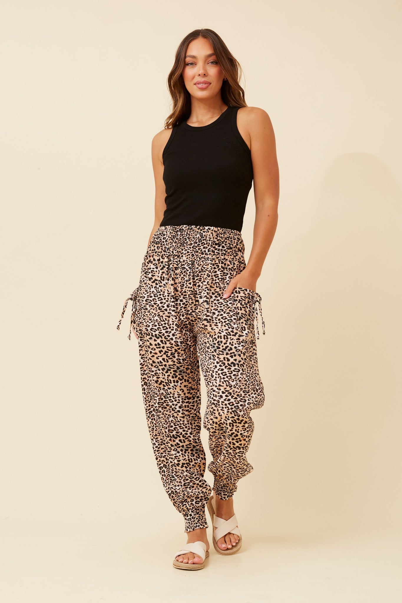 CKM Animal Print Harem Pants Beige