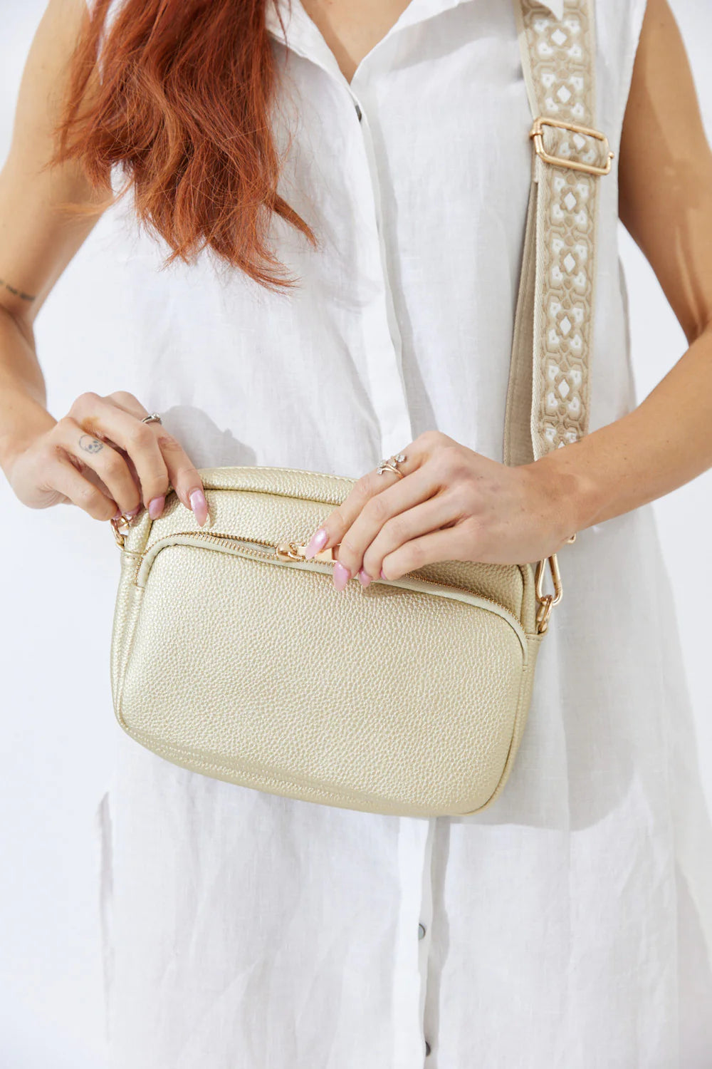 Nakoa Vegan PU Leather California Crossbody Bag Gold