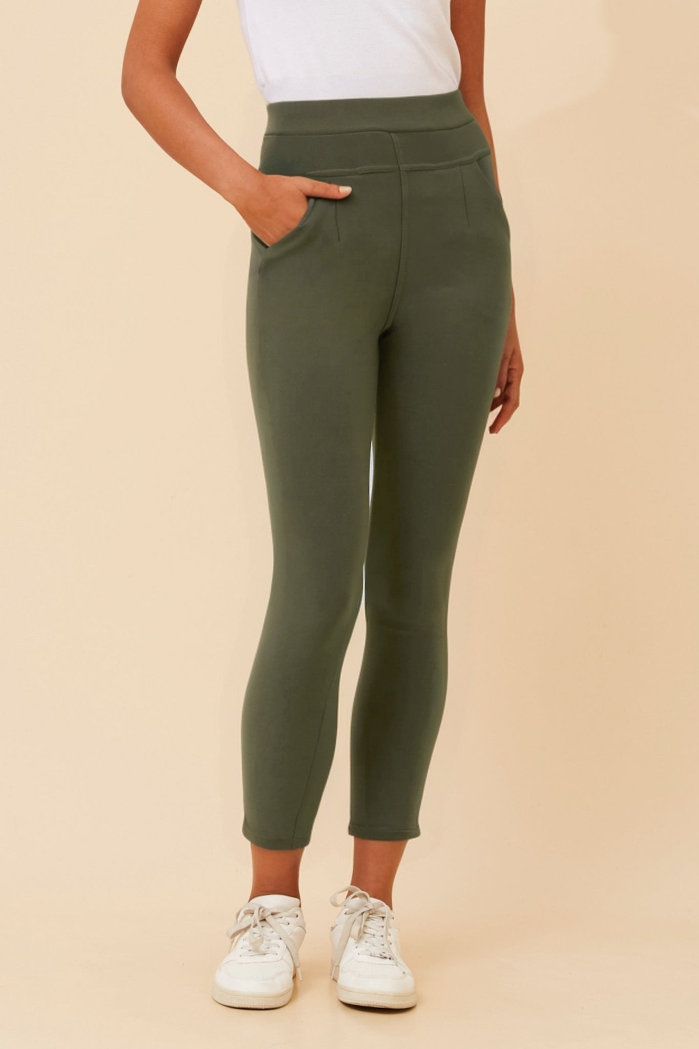 CKM Fleece Lined Leggings Khaki