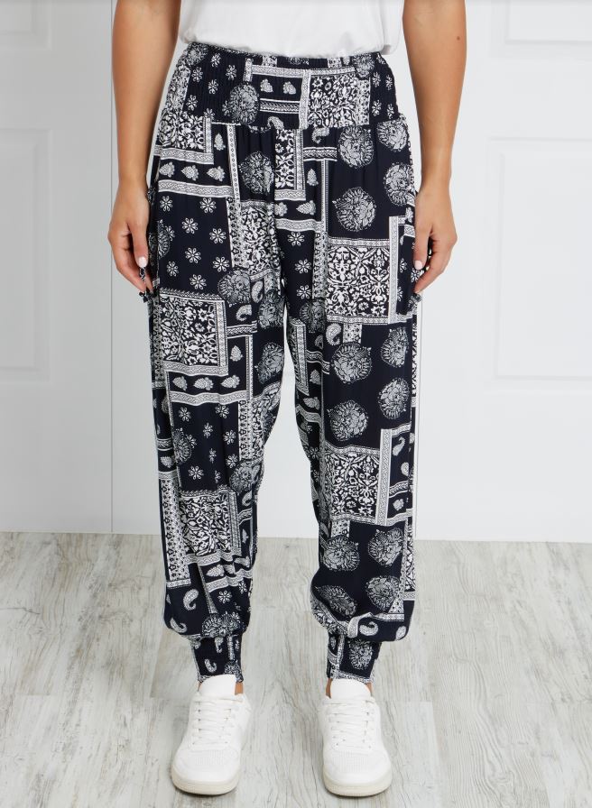 CKM Patchwork Print Harem Pants Navy